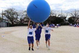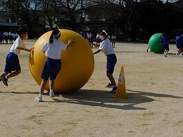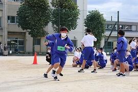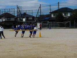 各学年で,徒競走・団体種目(1年:大玉転がし,2年:台風の目,3年:大玉運び)・学級対抗リレーの3種目を実行委員が中心となって行い,勝敗を競い合いました。