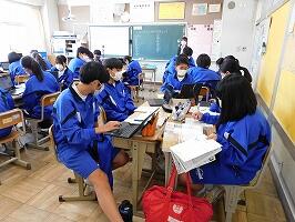 授業では,タブレットを使用するなど工夫をして展開しています。