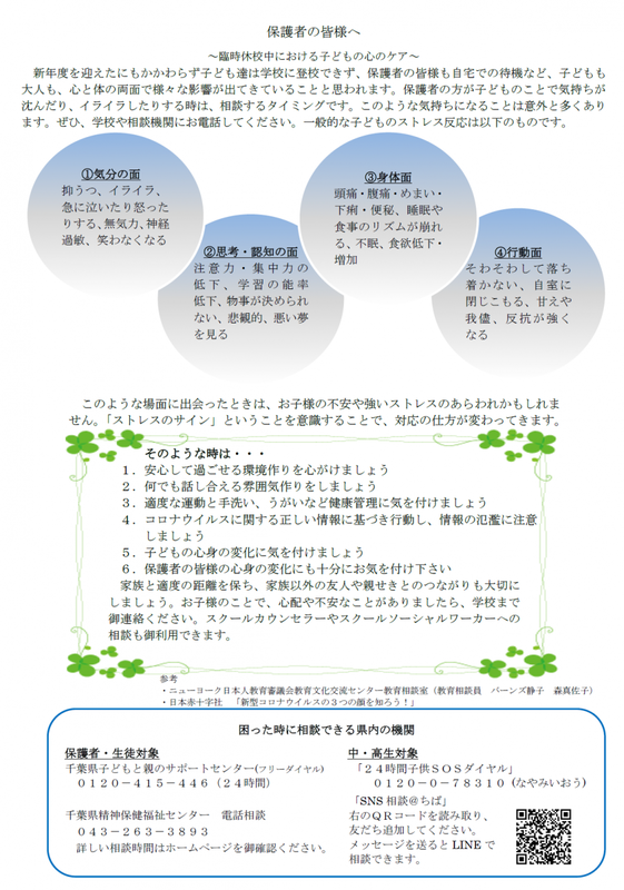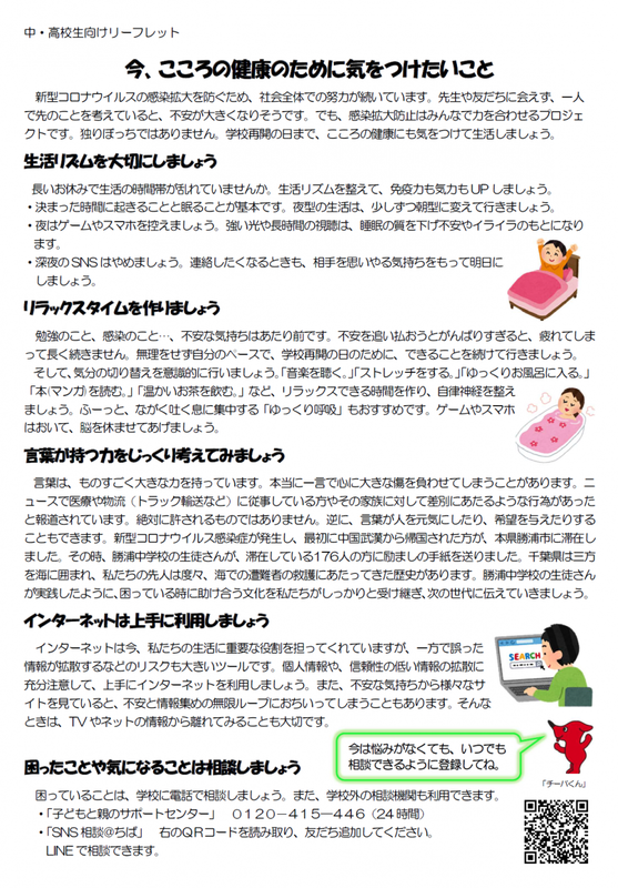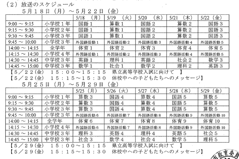 【変更点2】5月22日(金)29日(金)「県立高等学校入試に向けて」と「休校中の子どもたちへのメッセージ」の順番変更