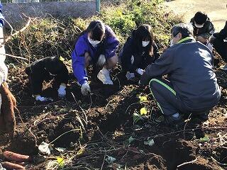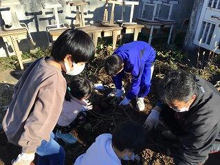 西原小学校の児童との交流で,さつまいも掘りを行いました。