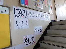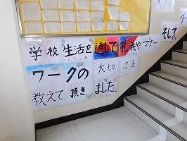 教室や廊下,階段にも温かいメッセージが掲示され,感謝の気持ちが溢れる校舎になっています。