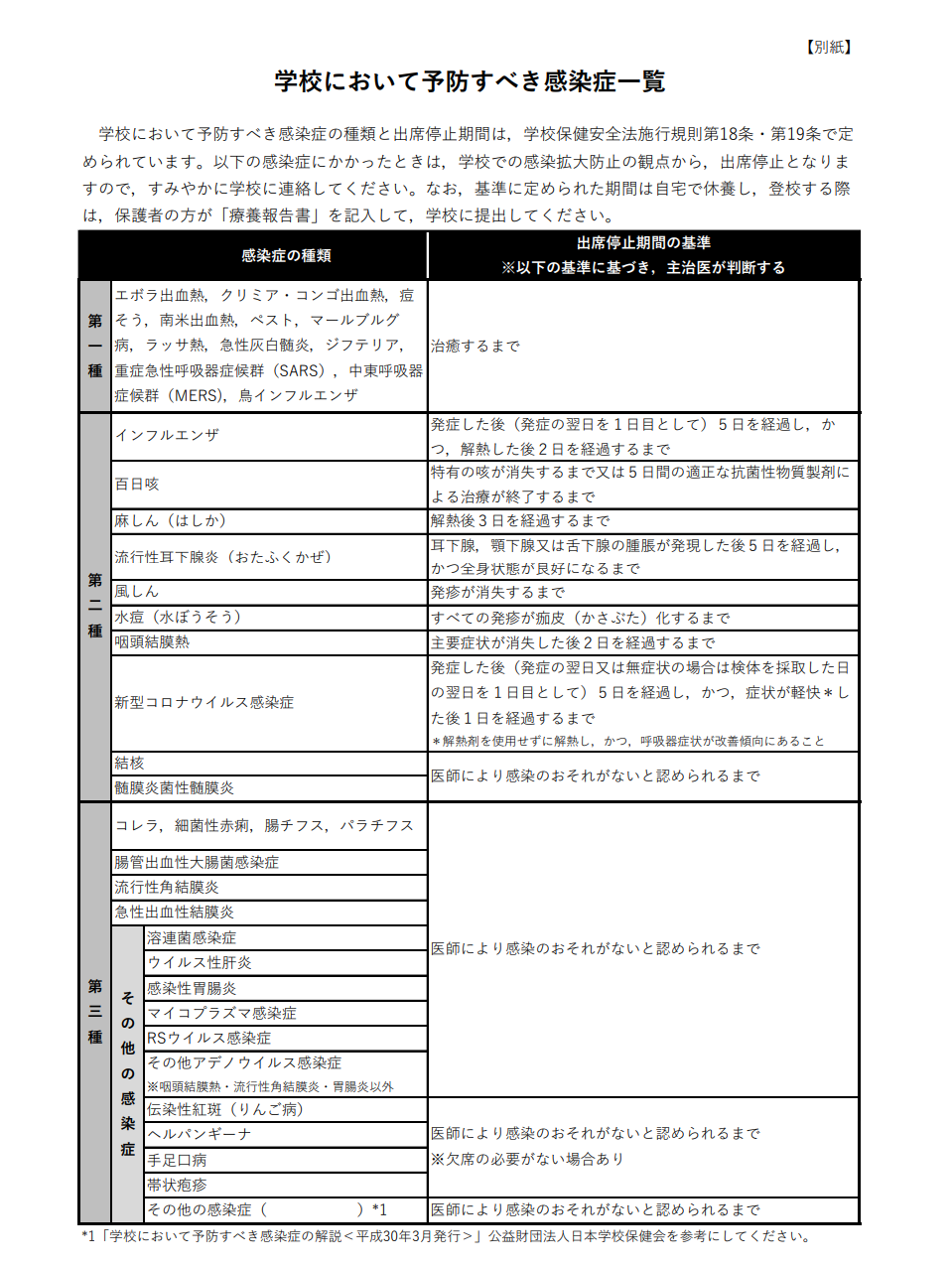病院を受診して感染症と診断された場合は、学校へすみやかにご連絡ください。