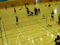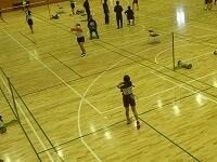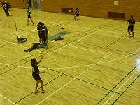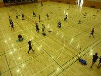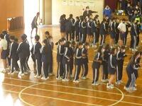 1月9日(日)午前、女子個人戦二日目の様子です。先輩を応援のもと富沢・柿田ペアーはよく健闘し、ベスト4となり表彰されました。岡芹・森ペアーも経験を積む大会となりました。富沢・柿田ペアーは柏市の代表として県大会出場も決まりました。今後の活躍を期待します。二日間にわたって保護者の皆様には選手の送迎にご協力いただきありがとうございました。