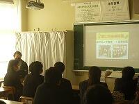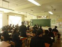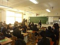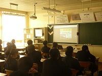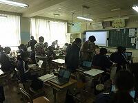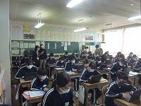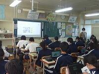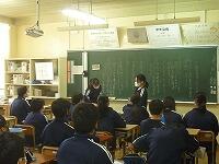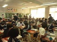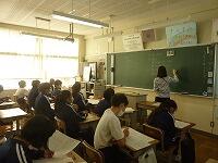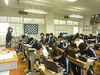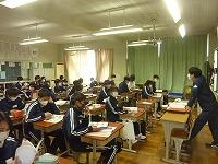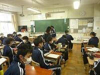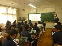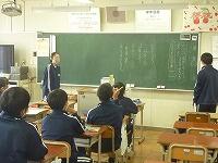 11月15日(月)3校時に五十畑教諭の初任者研修としての英語の研究授業が3年生で行われました。教育委員会より教育専門アドバイザーが来校し、英語科の教員の参観のもと「現在分詞の後置修飾」ついて授業が展開されました。写真のクイズやタブレットの活用により大変盛り上がっていましたし、意欲的によく挙手して発表も行われていました。授業後に英語部会が開かれ、教育専門アドバイザーより指導と助言が行われました。