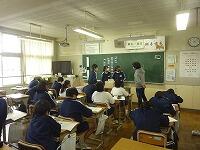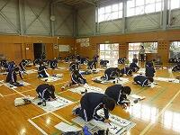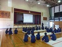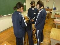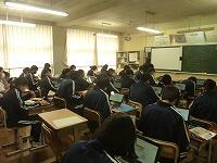 11月11日(木)2校時に教育委員会指導課指導主事を招いて校内研究授業が行われました。今回の授業者は中川教諭で初任者研修の一環として1年女子体育で「マット運動」の授業を展開しました。教職員に見守られる中でしたが、生徒達は平常どおり入念なウォーミングを行っていました。まず前時の復習を終えてから映像による説明を受け、「連続技をつくろう」という本日の課題にアイパットも活用して一生懸命取り組んでいました。授業後に指導主事及び体育科より・中川教諭への指導・助言があって校内研究授業は終了しました。