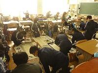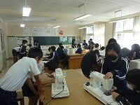 11月12日(金)1年生が被服室でミシンの扱いに取り組んでいました。「トートバック」製作にミシンは欠かせません。2年生は技術科室で「ペン立て」製作のため金属加工に取り組んでいました。また、2年生は並行して一階で水菜の水耕栽培も行っています。