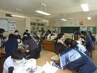 1月19日(水)1年生が5部門に分かれて「3年生を送る会に向けて」の説明を聞いたり、取り組みについて話し合いをしている様子です。2年生は川越新聞の印刷と高校調べの続き、3年生は面接や作文の練習等を行っていました。