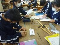 11月8日(月)校内研究授業が行われました。1校時に理科室で中堅研として福島教諭が「回路の電流」という単元の中で電流の大きさについて各自で予想を立て、各班で検証する実験を行う理科の授業を展開しました。研究授業には教育委員会指導課より指導主事が来校し、授業後に指導・助言を受けました。2校時には3年目研として濱田教諭が1年生で国語科の教員の参観のもと「写真で『事実』を表現する」という単元についてタブレットを活用し、4枚の写真を並べ替えてオリジナルのストーリーを作成する国語の授業を展開しました。1校時も2校時も生徒はいつも以上に張り切って取り組んでいました。
