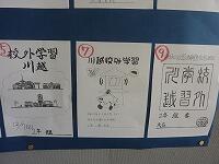 11月16日(火)2年生の3階の掲示物です。校外学習の表紙絵の生徒投票結果によりグランプリの福島教諭の絵が表紙絵に準グランプリの平川教諭の絵が裏表紙の採用されました。他の写真は廊下の掲示された川越班別行動のための事前学習で作成した掲示物です。 準備は着々と進んでいる様子です。