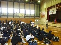 1月7日(金)学級活動後、3年生は体育館で私立高校受験者に対する事前指導を行いました。明日より私立高校の受験が始まります。指導の内容をよく確認して受験に臨んでほしいと思います。1・2年生は部活動が始まりました。本日は再登校はありません。グラウンドの部活動が早速、雪かきを頑張っています。