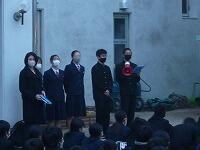 1月21日(金)大変冷え込む放課後のグラウンドでサッカー部が明日の県新人代替大会出場をかけた試合に向けて激しい練習を3年生も交えて行っていました。また、創心館では日曜日の1年生大会に向けて熱心に練習に取り組むバドミントン部の姿がありました。土日の大会での両部の活躍に期待します。他の部活動は土日の活動はできなくなりました。不要不急の外出は自粛し、休養やテスト勉強等にあててほしいと思います。