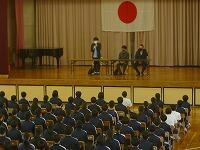 1月20日(木)4校時に不審者対策の避難訓練を実施しました。不審者の校舎侵入を告げる緊急放送で生徒はクラスの出入り口にバリケードをつくり、侵入を防ぐ行動を素早く行っていました。訓練後に柏警察署生活安全課の方からリモートで防犯講話をいただきました。最近、大学入試会場でも刃物による事件が発生しています。いつ、どこで急に危機が潜んでいるかわからない世の中です。自分の命は自分で守るためにいかに冷静に判断して行動できるか、それも生死を分ける人間力だと考えます。今後も命を守るための訓練や講習は継続してまいります。