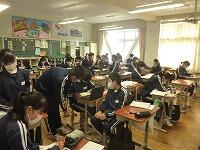 1月17日(月)3年生は今日と明日の2日間、千葉私立入試が集中していますので特別日課で2時間で下校です。今日は83名、明日は60名が受験します。登校した生徒は進路が内定した生徒は自習、これから受験の生徒は面接や作文の練習、公立願書の下書きの点検等が行われていました。感染が急拡大していますので無事に受験を終えることを願っています。体調管理を第一にして過ごしてほしいと思います。