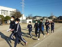 1月14日(金)冷たい強風が吹いていますが、生徒は元気に活動しています。1年生の体育の授業の様子です。全学年が持久走への取り組みを始めました。男子は1500m、女子は1000mを走ります。今日の1年生は男女とも持久走だけでなく男子は馬跳びや腕立て伏せ、女子は縄跳びで体力づくりに取り組んでいました。今、免疫力を高めるためにも栄養、睡眠・休養に加えて運動は欠くことができないと思います。ぜひこの機会に体力を少しでもアップできるよう意識して取り組んでほしいと思います。