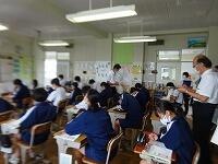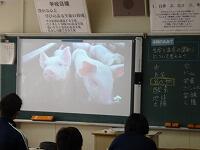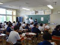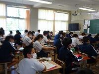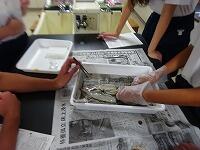 9月11日(金)1時間目の2年生の理科室での授業です。軟体動物の特徴についてイカの解剖を通じて学習していました。初めての体験に驚きの声をあげている生徒もいて集中して取り組んでいました。