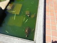 9月9日(水)本日も暑い日ですが、朝の部活動から生徒は頑張って活動しています。中庭の4匹の亀は暑さから池の底に逃れていましたが、のぞくと律義に四匹とも出てきてくれました。一番小さな亀は普段はなかなか出てこないのですが、今日は珍しく四匹とも浮上し、元気な姿を見せてくれました。