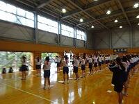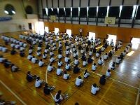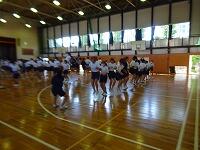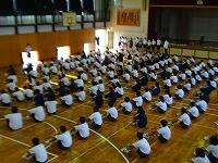 9月10日(木)6校時、大津リンピックに向けて3年生はグラウンドで台風の目の練習、2年生は色別に応援練習、1年生は体育館でローハイドの練習に取り組んでいました。昨日と比べると涼しい中で練習することができ、実行委員や応援団が中心になって指示や説明を今日も頑張っていました。
