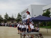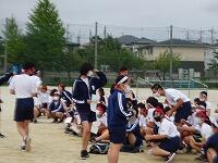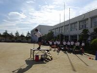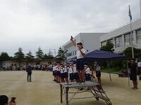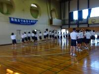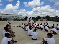 9月8日(火)2学年が大津リンピックに向けて学年レク種目の練習をグラウンドで行いました。実行委員が隊形や並び方の指示を出し、模範演技でルールを説明する等、とてもよく頑張っていたと思います。前日も準備で残っていました。生徒が中心になってつくりあげる行事になっていると思います。