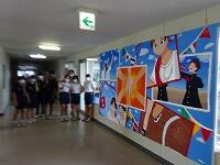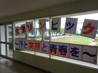 9月13日(日)美術部が2日にわたって大津リンピックパネルとスローガンの作成に頑張って取り組み、予定通りに本日、完成させて昇降口前に掲示することができました。見事な出来栄えです。美術部の皆さん、大変お疲れ様でした。明日、登校した生徒はみんなびっくりすると思います。
