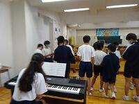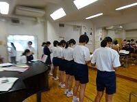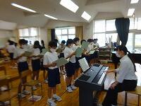 10月22日(木)職員室に歌声が響いてきました。中庭で音楽科の永井教諭のハーモニカにあわせて大きく広がった1年生が合唱の練習に取り組んでいました。本日は2学年のリハーサルが行われます。