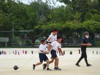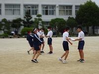 9月11日(金)2時間目にグラウンドで三原実習生の精錬授業が行われ、3年3・6組の男子がハンドボールに取組みました。課題や指示をしっかり把握して、練習からゲームまで無駄のない動きで一生懸命にやっていました。暑い中でしたが、十分にスポーツを学び楽しむ時間になりました。