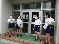 9月24日(木)朝の生徒会選挙運動の様子です。昨日の朝から始まり、明日の朝まで昇降口前で行われます。登校する生徒や朝練が終わって戻ってくる生徒に対してアピールしています。本日の昼の放送では3名の候補者が立候補の表明を行う予定です。