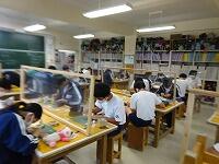 9月24日(木)3年生の現在の技術と美術の授業の紹介です。技術ではコンピュータ室でプログラミング通りに図面上を走行するか、指示通りに走行させられる人と指示通りに動かず苦戦している人がいました。美術では美術室で篆刻は終了し、印をおさめる印箱の制作に取り組んでいました。デザインにあわせて貝をはりつけ、その後に漆を塗り、仕上げとして磨いていく大変根気のいる作業に取り組んでいました。こうした取り組みを通して自分自身の資質・能力が開花したり、向上したりしていくと思います。技術の成功、美術の完成の体験を今後に活かしてほしいと願います。