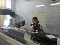 9月13日(日)昨日に続いて吹奏楽部はコンクール曲録音のため、ひまわりプラザで練習と録音演奏に取組んでいる様子です。心を一つに集中して部分練習を繰り返していました。二日間にわたって保護者の皆様には楽器の運搬をはじめとしてご支援・ご協力をいただきましたことに御礼申し上げます。