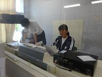 給食の時間を利用して選挙管理委員会の立ち合いのもと、放送室で本日は会計候補の2年生の小柴さんと1年生の大竹さんが立候補の表明を行いました。選挙運動は25日まで行われ、28日に立会演説と投票が行われます。