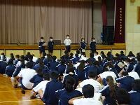 10月28日(水)1年生の初めての合唱発表の様子です。とても緊張していたと思いますが、今年、経験しておくことは必ず来年につながると思います。クラスのまとまりも見せてくれました。後ほど各クラスで鑑賞します。
