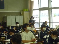 10月19日(火)3年生の技術の授業で「将来の夢」について発表している様子です。1学期から取り組んでいきたプレゼンのためのスライドづくりが終了し、最後に各自で発表することになりました。スライドには図やイラスト、アニメーション等が工夫されており、見やすくわかりやすスライドが作られていました。人の発表を聞くことで他の職業や目標等を知ることも今後の進路選択にとってとても参考になっているようでした。