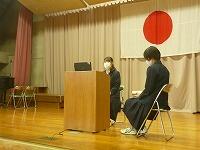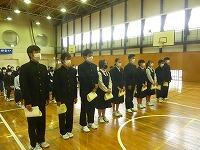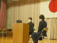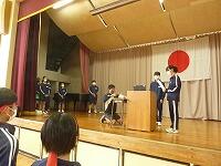 3年部会長より激励し終了。任命式で委員長に感謝状の贈呈
