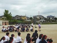 10月15日(金)同点の状態で3年生の登場です。1・2年と同じように学年開会式と合同体操を行って台風の目を始めました。さすが3年生というスピードと迫力がありました。1組が1位となりましたが、5組が競技中に棒が三つに折れるハプニングがあり、急遽、第2回戦を行いました。今度は3組が1位となりました。次の学級対抗リレーは最後まで勝ちにこだわるレースが展開され3組が1位になりました。ここで給食・昼休みとなり、午前の部が終了となりました。ご参観ありがとうございました。