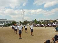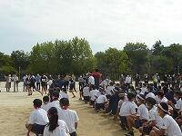 10月15日(金)体育祭の2番手の登場は2年生です。学年開会式と合同体操を終えて台風の目となりました。2年生もクラス一丸となって取り組みました。1位は4組でした。学級対抗リレーもかなり力が入ったレースが展開され、4組が続けて1位となりました。最後の学年閉会式で得点の発表がありました。1年と2年の合計点が紅白とも210点で同点ということがわかり、次の3年生に総合優勝がゆだねられました。