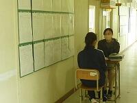 10月19日(火)教育相談が開始されました。事前に相談用紙を記入して相談したい相手を決めて1・2年生は行います。3年生は進路開拓間近なので担任が担当します。10月29日までの期間に面談を希望された職員が時間や場所を決めて行っていきます。写真は19日(火)の2年生の教育相談の様子です。
