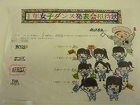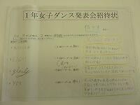 10月20日(水)2校時に行われた1年3組と5組の女子体育ダンス発表会の様子です。前日に校長室にかわいい絵が描かれた招待状が届きました。早速、本日の体育館での発表会に参加しました。どのチームも創意工夫をこらしたダンスを堂々と発表していることに感心しましたし、全身でダンスを楽しんでいる姿も素晴らしいと思いました。2年生では更にグレードアップすることでしょう。