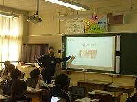 10月25日(月)後期開始です。校内にトトロが現れました。誰が入っているのでしょうか。廊下や教室に登場すると「誰」「誰」と生徒達も喜んでいました。ちょうど1年生の英語の授業で発表会が行われていました。最後にクラスのみんなに質問をするコーナーがありました。Who is this? トトロの中に入っていたのはALTのシルバ先生でした。毎年、各学校でハロウィンが近づくと仮装して授業に参加されているそうです。