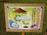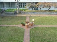 11月2日(火)よいお天気になりました。中庭に大きな花鉢が置かれています。用務員さんが設置したもので「リサイクルフラワー」です。生徒がリサイクルの意識を持てるように看板も作成していただきました。
