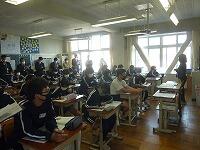 10月13日(水)あいにくの雨になりましたが、今日は他校種体験として風早北部小学校の先生が3名来校しています。2・3年目研修として吉田先生が3年生、岩切先生が2年生、岩﨑先生が1年生の授業に1時間目から参加し、生徒の下校まで本校で体験します。明日も風早北部小学校より2名の先生が来校されます。