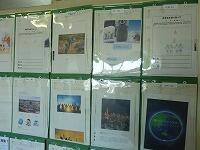 11月4日(木)本日から全学年保護者面談のため特別日課となります。体育館で合唱をしている1年生も制服の生徒は一斉下校、体操服やジャージの生徒は部活動を行ってから下校する生徒に毎日分かれます。本日から3・4階の多目的室を保護者控室にします。この教室で体育祭の映像を見ることができますのでお寄りください。また、各教室の廊下には様々な授業で作成した掲示物があります。写真は1年生のSDGsの広告が掲示されているところです。ぜひ各教室の廊下の掲示物をご覧ください。