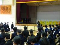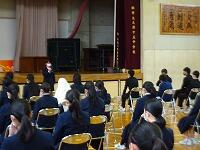 3月2日(火)不安的な天気の中ですが、1・2年生では平常授業が行われています。3年生は特別日課の中で実行委員会の進行で卒業式練習を3クラスごとに行いました。実行委員が式の意義や礼法等を丁寧に説明し、実行委員の指示で練習も行っていました。自分たちの手で卒業式を成功させてほしいと願います。