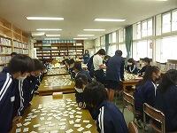 1月11日(火)メールですでにお知らせしたとおり、3連休中に本校職員に感染が判明しましたが、濃厚接触者は特定されず本日も通常通り授業を行いました。図書室で1年生が百人一首に取り組む様子です。明日から給食のため本日は午前日課で下校しました。明日は全校で実力テストがありますので午後はテスト対策に時間を使ってほしいと思います。全国的に感染症が急拡大している状況です。日々の検温による健康観察、手洗い・うがいの励行、黙食、3密を回避する行動、換気、不要不急の外出の自粛等の徹底を引き続きお願いいたします。