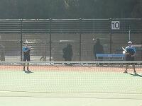 1月8日(土)午前、富勢庭球場でテニス部の1年生大会女子個人戦が行われました。7ペアーが出場し、2回戦を勝ち抜いた富沢・柿田ペアーと岡芹・森ペアーがベスト32で二日目に進出することができました。他のペアーも寒い中、懸命にプレイしていました。初の公式戦で初戦に勝った経験や負けた悔しさを今後に活かしてくれるものと思います。2年生もサポートに来て応援してくれました。