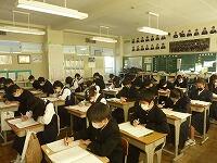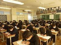 1月12日(水)天気が回復しましたが、冷たい風が吹いている中、一日がスタートしました。本日は全学年で実力テストが実施されています。3年生にとって最後の実力テストになります。冬休み中の受験勉強の成果を発揮したいという強い思いが真剣な表情にあらわれています。2年生は1年後に3年生の同じ立場になりますので、現時点でどのくらい力があるかを把握することは大切です。1年生は初の実力テストです。入学してからの取り組みが試されます。どの学年も持てる力を最大限に発揮してほしいと願います。今日は5時間連続でテストとなり、テスト後に部活動を行って16:30完全下校の予定です。