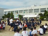 10月11日(月)1校時が1年、2校時が2年、3校時が3年と学年別にグラウンドで台風の目の練習を行いました。実行委員が説明や見本を示し、実際にやってみた後に作戦会議や補充練習等を行いました。1ヶ月ずれましたが、グラウンドに元気な声が響き、活気が戻ってきました。15日(金)の当日が楽しみです。