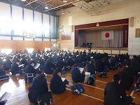 1月7日(金)学級活動後、3年生は体育館で私立高校受験者に対する事前指導を行いました。明日より私立高校の受験が始まります。指導の内容をよく確認して受験に臨んでほしいと思います。1・2年生は部活動が始まりました。本日は再登校はありません。グラウンドの部活動が早速、雪かきを頑張っています。