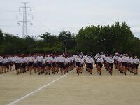 9月10日(木)6校時、大津リンピックに向けて3年生はグラウンドで台風の目の練習、2年生は色別に応援練習、1年生は体育館でローハイドの練習に取り組んでいました。昨日と比べると涼しい中で練習することができ、実行委員や応援団が中心になって指示や説明を今日も頑張っていました。