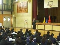 12月6日(月)体育館で2年生は明日の校外学習(川越)についての事前指導を合同帰りの会で行いました。学年職員以外の引率者として校長、養護教諭の紹介、実行委員長の話、担当教諭からの注意事項の確認等が行われて下校しました。明日は6:30整列完了・点呼となっています。校長からは・感染症対策・防寒対策・雨天対策を万全にして参加をお願いしました。明日は現地の天気は曇りで寒そうです。夕方以降、雨天となる予報がでていますので準備をしっかりお願いいたします。