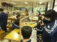 12月8日(水)3年生の美術の様子です。「螺鈿」という漆器や帯などの伝統工芸に用いられる装飾技法を活用して金粉を漆で溶いて彫刻された表面のはめ込む作業を行っていました。2年生での篆刻による印づくりから始まり、印を納める印箱づくりもこの時間で終了となります。長時間かけて伝統の美に学ぶことができました。校内修学旅行でつくった京扇子とあわせて大事な卒業記念品となることでしょう。次回からは遠近法をついて学習する予定です。