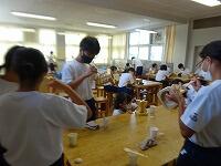 9月2日(水)1・2年生は通常の授業です。2年生は木工室で「タッチセンサーライト」づくり、1年生は被服室で「トートバッグ」づくりに熱心に取り組んでいました。両作品ともに完成間近と感じました。オンリーワンの手作り作品の完成がとても楽しみです。